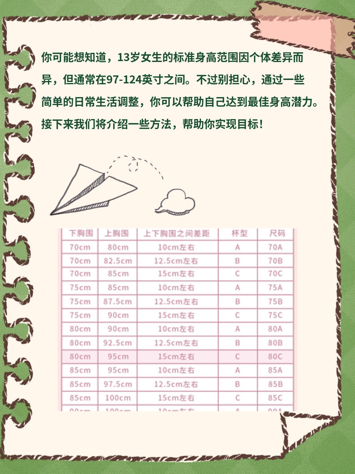 你知道吗?13岁女生的标准身高可是有讲究的。我有个好朋友叫小田,她就因为身高问题而感到困扰。小田是个活泼开朗的女孩儿,但是最近她却总是闷闷不乐的。原来是因为她的身高比同龄人矮了一大截,这让她很自卑。每