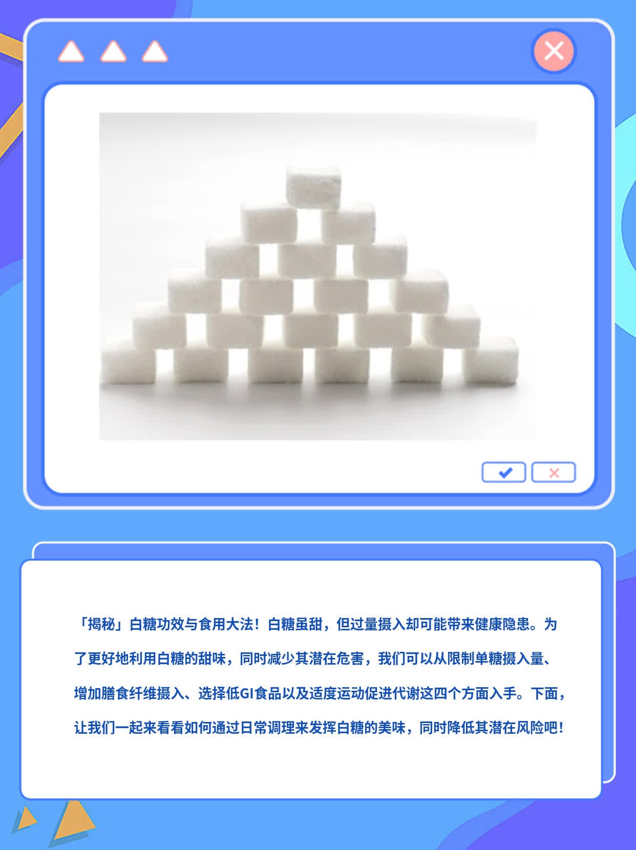 这回儿咱就来聊聊白糖那点事儿吧!我身边的朋友小曾最近身体不太舒服,听说是跟吃白糖有关。说起这个小曾啊,他是个甜食爱好者。平时最爱的就是各种糖果、蛋糕啥的,特别是对白糖情有独钟。可自从上次吃了太多含糖食