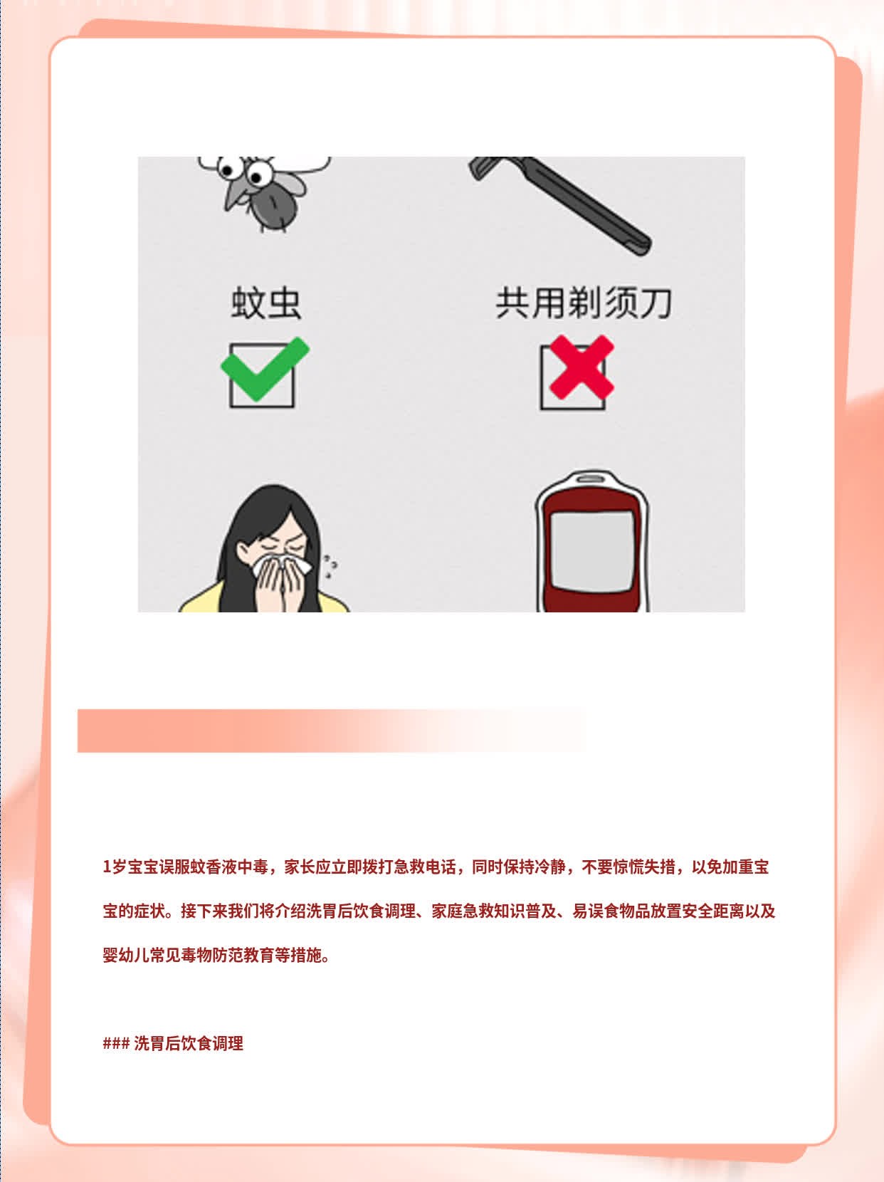 这是一次惊险的经历,我的好朋友小魏家里的1岁宝宝误服了蚊香液。当时小魏的孩子出现了呕吐、腹泻等症状,情况十分危急。