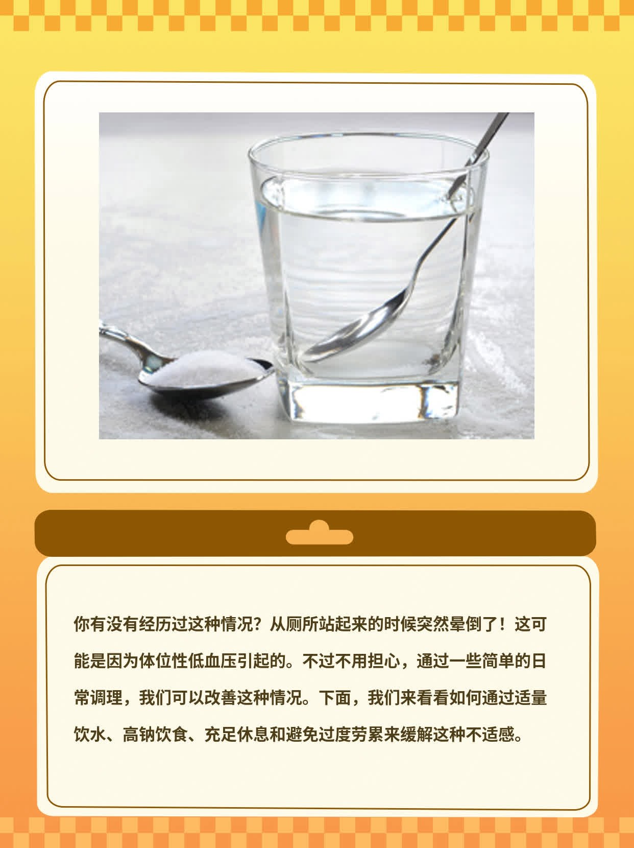 这回儿咱来聊聊我那好兄弟小胡啊。他最近遇到了个怪事,每次上完厕所站起来的时候都会头晕眼花,差点儿就晕倒在地。