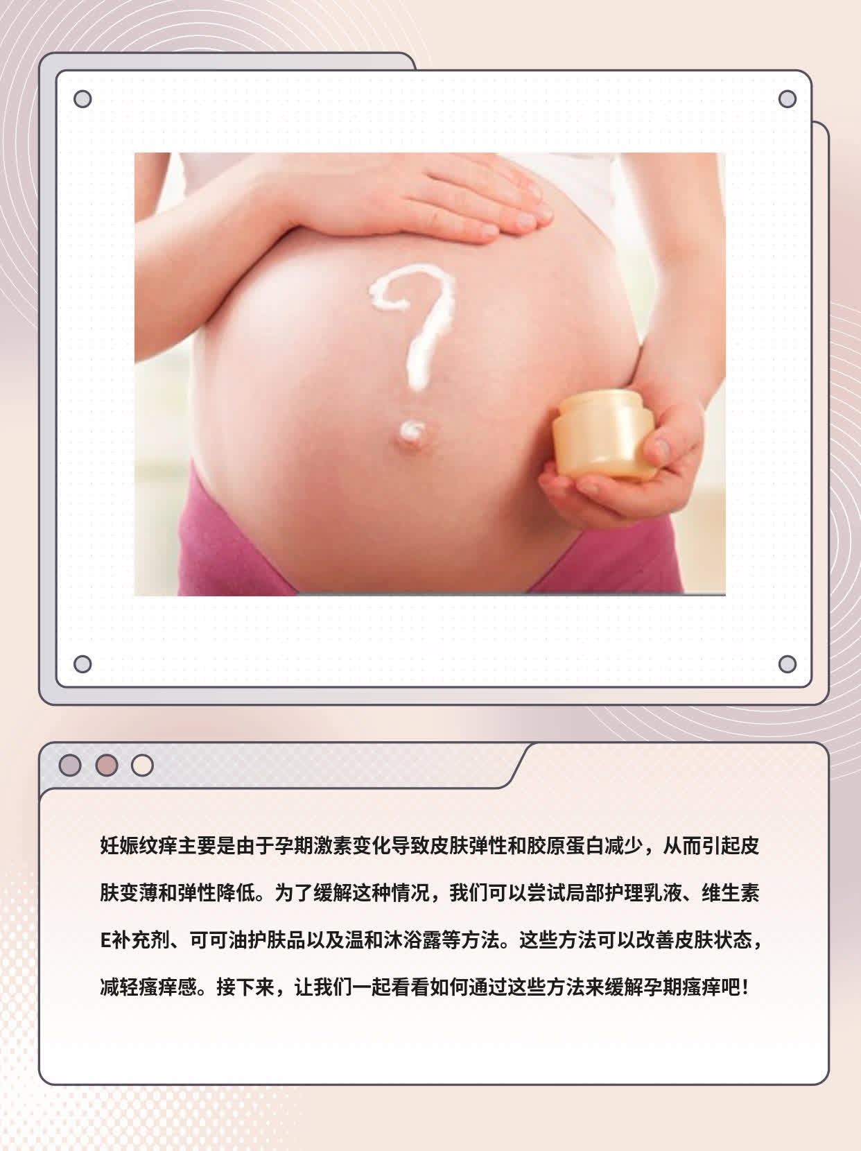 2024-05-27听说好多姐妹都有孕期瘙痒的问题,我朋友小陈也不例外。她一开始还以为是皮肤干燥,结果越挠越痒,最后发现是长出了妊娠纹。