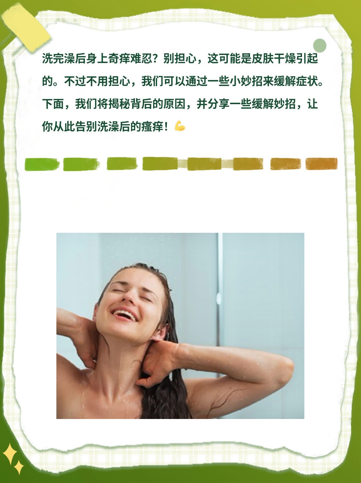2024-05-21这不,我身边的朋友小蒋最近就遇到了一件烦心事。他发现每次洗澡之后皮肤就会奇痒难耐,简直让人抓狂。