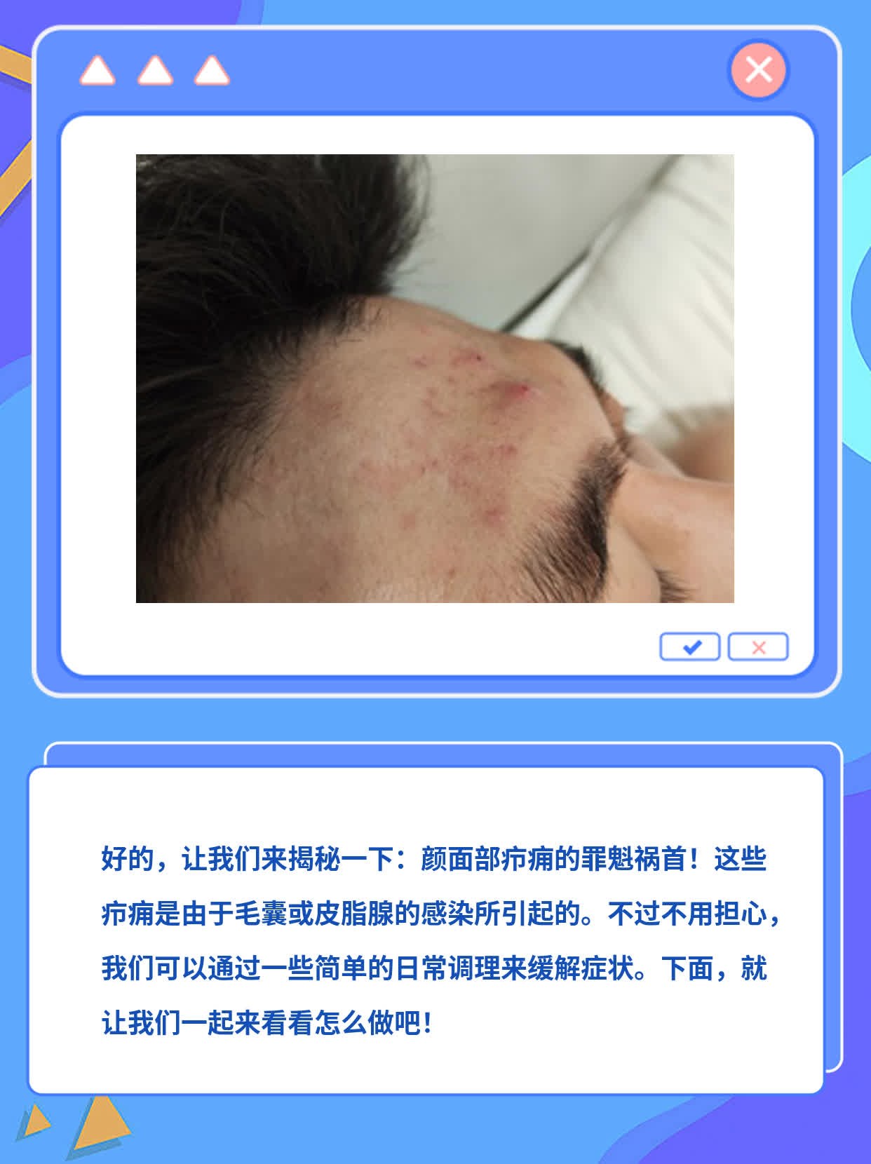 2024-05-21最近我身边的朋友小孙,脸上长了一个硬包,开始以为是粉刺,结果越长越大,疼痛难忍。后来去医院检查,才知道原来是得了颜面部疖痈。