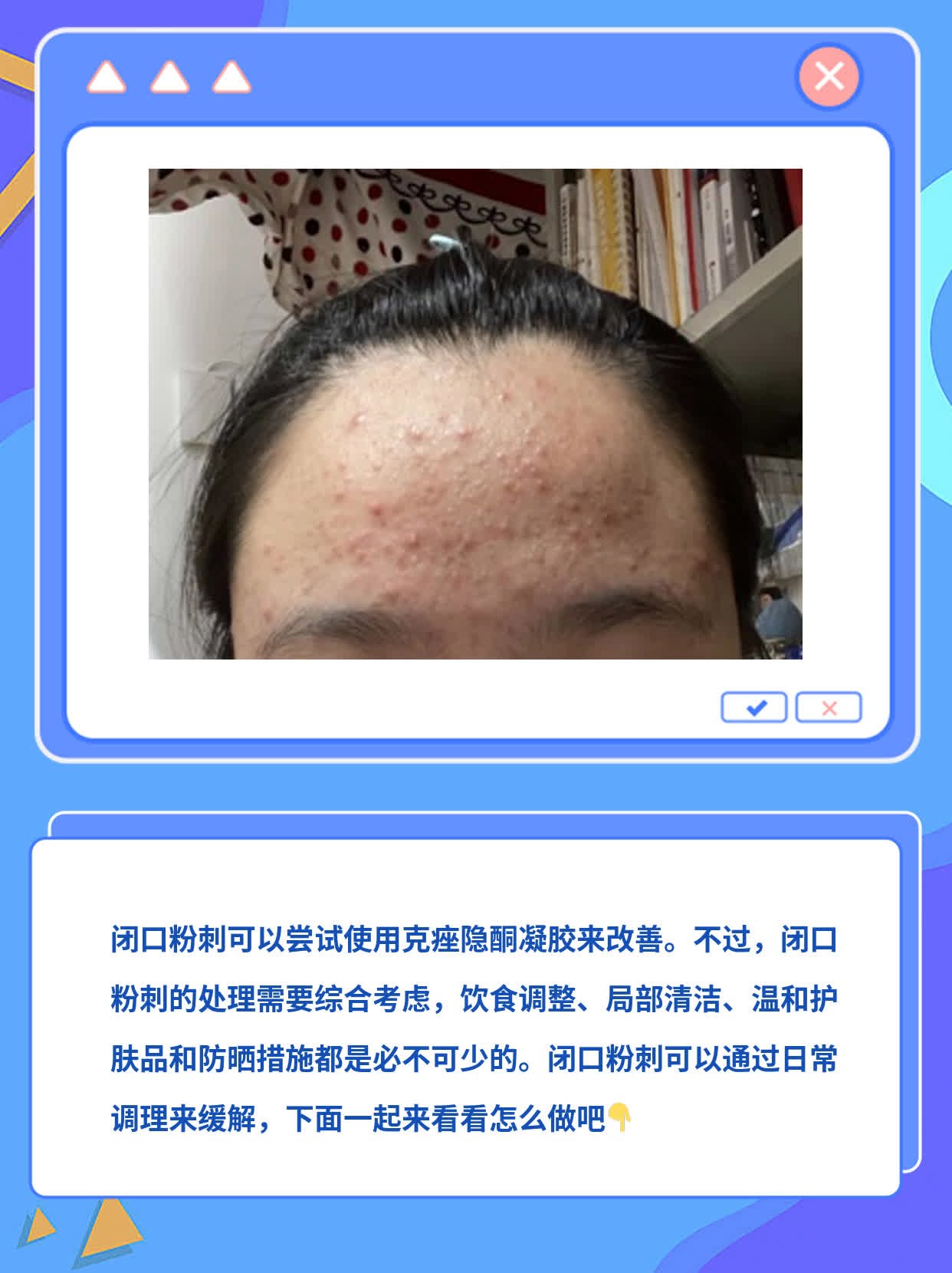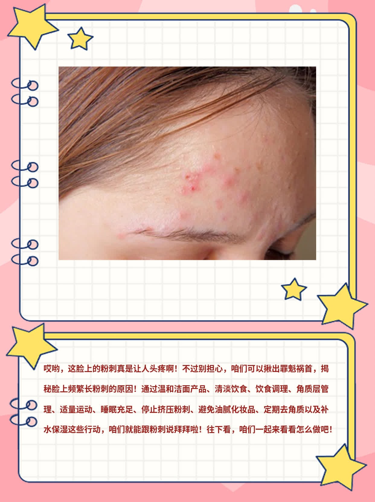 2024-05-20最近我身边的朋友小蔡开始有点儿苦恼。他发现自己的脸上的粉刺总是反复出现,这让他感到十分困扰。