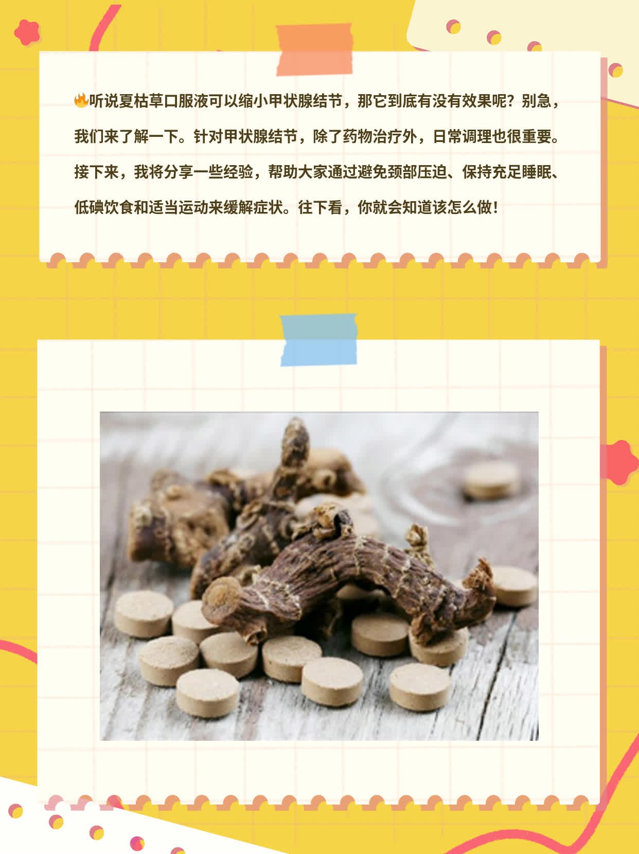 2024-05-28听说夏枯草口服液可以治疗甲状腺结节,我身边的朋友小许也遇到了这个问题。一开始,他只是感觉脖子有点肿胀,以为是睡觉姿势不正确引起的。