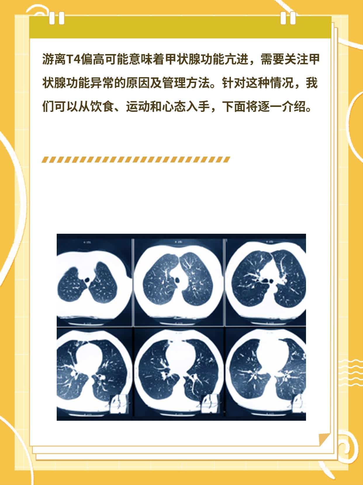 2024-05-28我有一个好朋友叫小马,他最近总是感觉心慌手抖,去医院检查发现是游离T4偏高。这可把他吓坏了,毕竟谁也不想身体里多了一堆“乱窜”的激素。