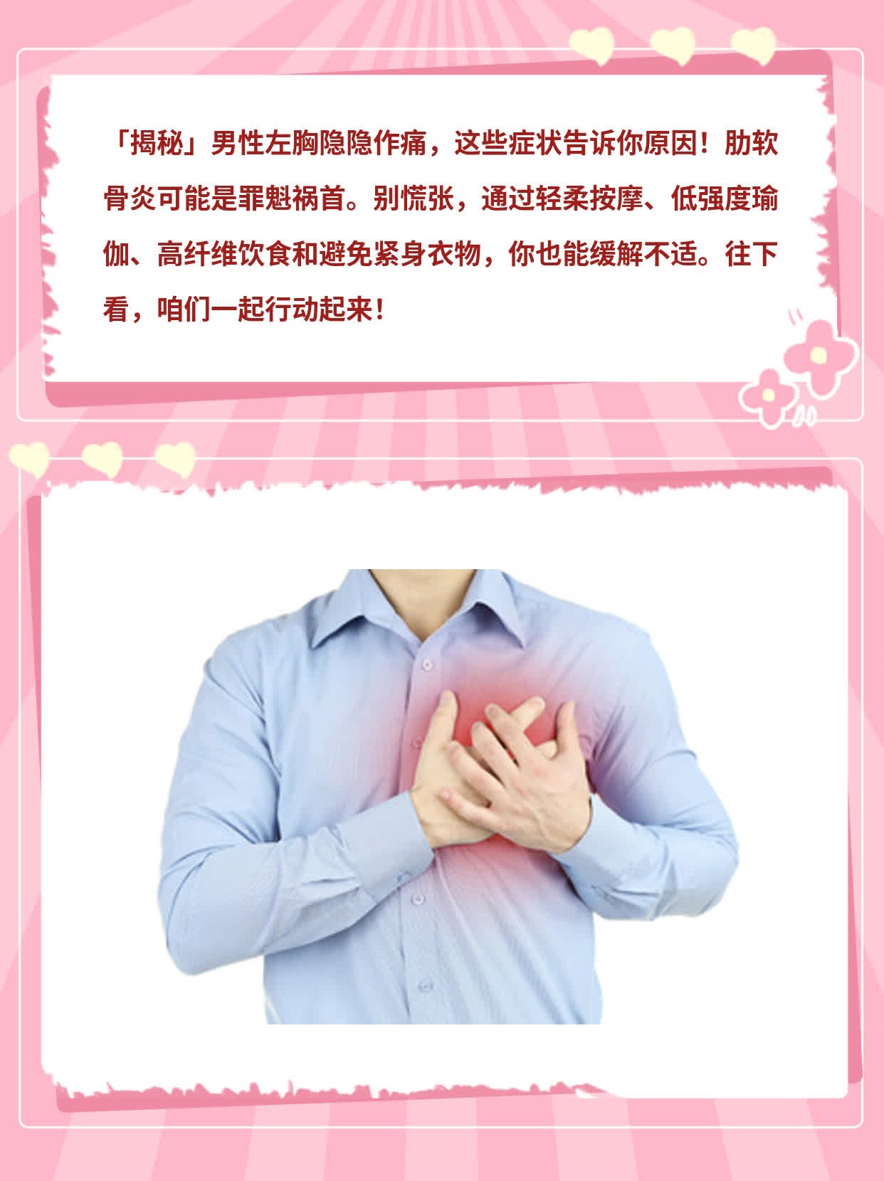 我有一个朋友叫小罗,他最近跟我抱怨说他的左胸时不时会隐隐作痛。一开始我以为只是小事,没想到后来疼痛加剧,于是他决定去看医生。