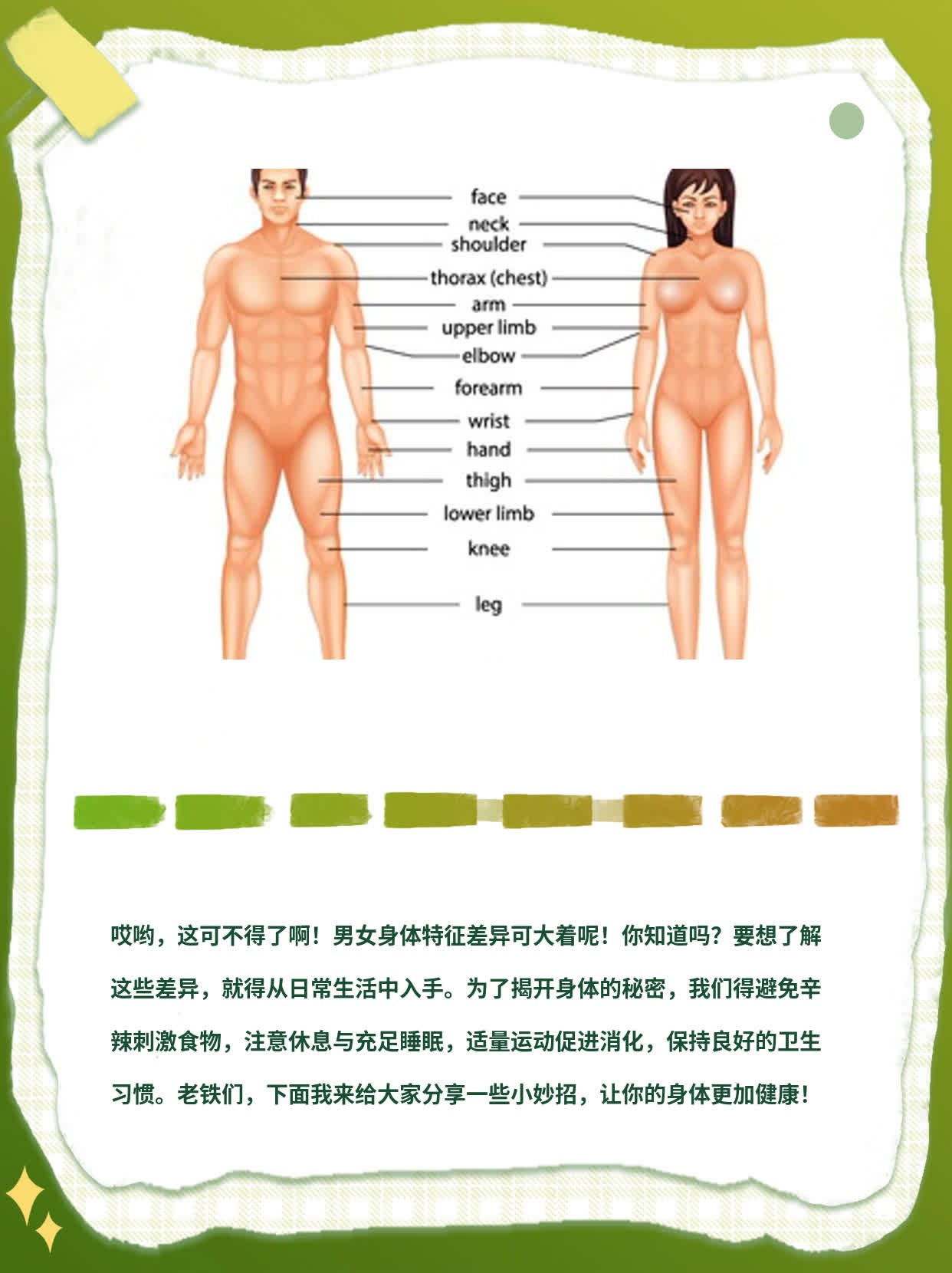 男性女性的身体特征差异有哪些