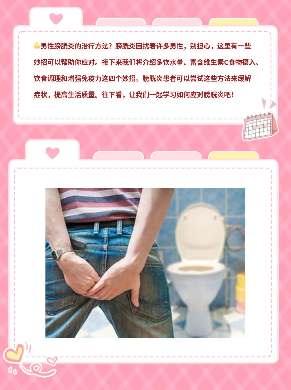 这回儿咱来聊聊男性膀胱炎这个话题。我身边的朋友小林就曾经被这个问题困扰过。一开始他只是感觉尿频尿急,以为是工作太忙没休息好。
