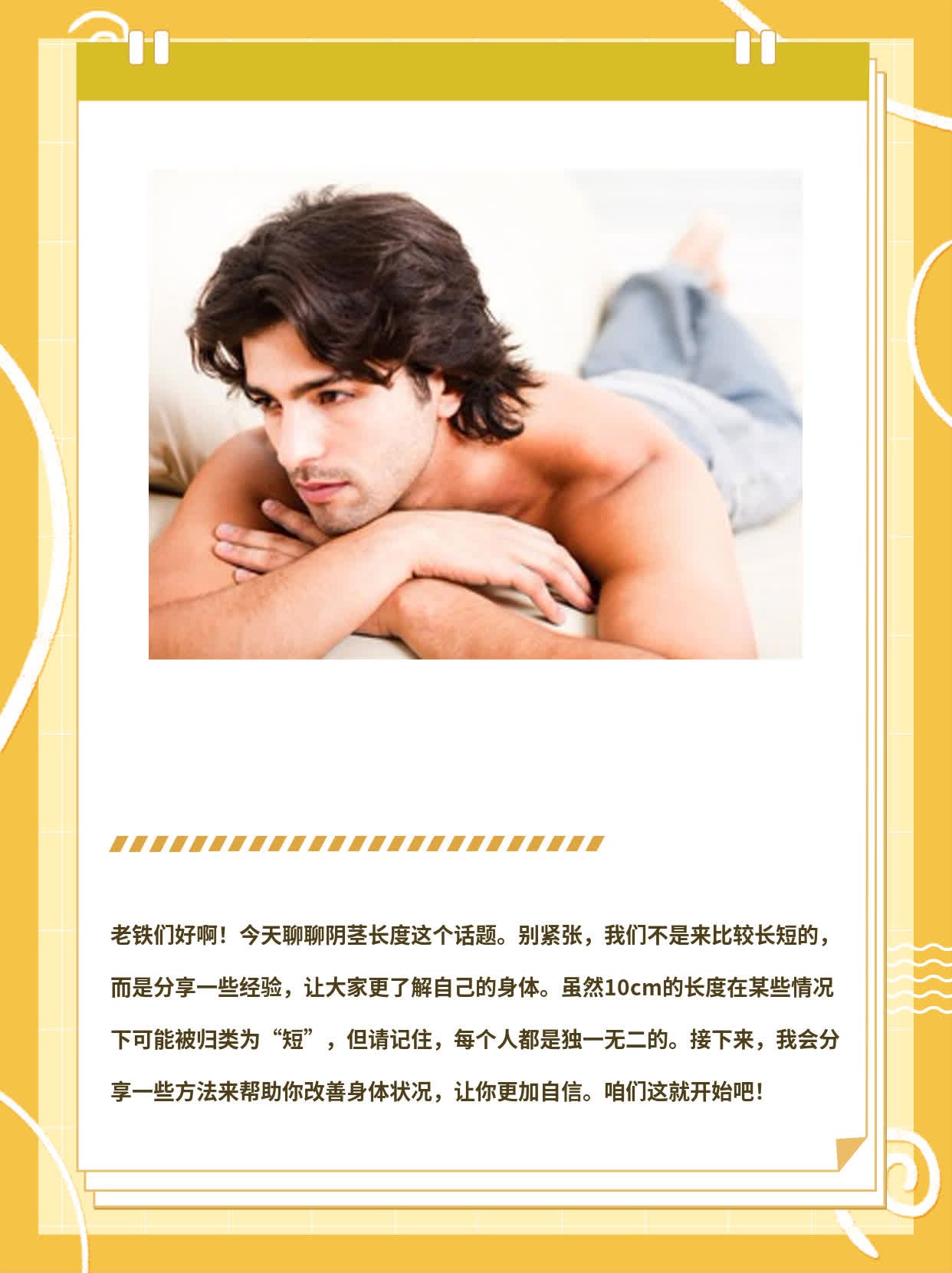 这不最近嘛,我那好兄弟小王就跟我抱怨说他那玩意儿不够威武雄壮,才10cm。当时我就懵逼了,心想:啥?10cm?这也太短了吧!于是我就问他到底咋回事。