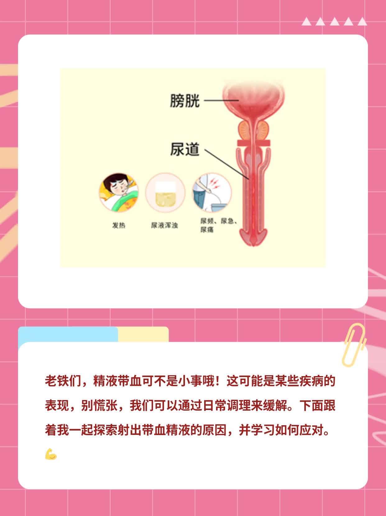 这回咱先说说射出带血精液的事儿。我有个朋友叫小程,他最近发现自己的精液里有血迹,开始还以为是吃啥上火了,结果症状持续了一段时间,他就有点儿慌了。