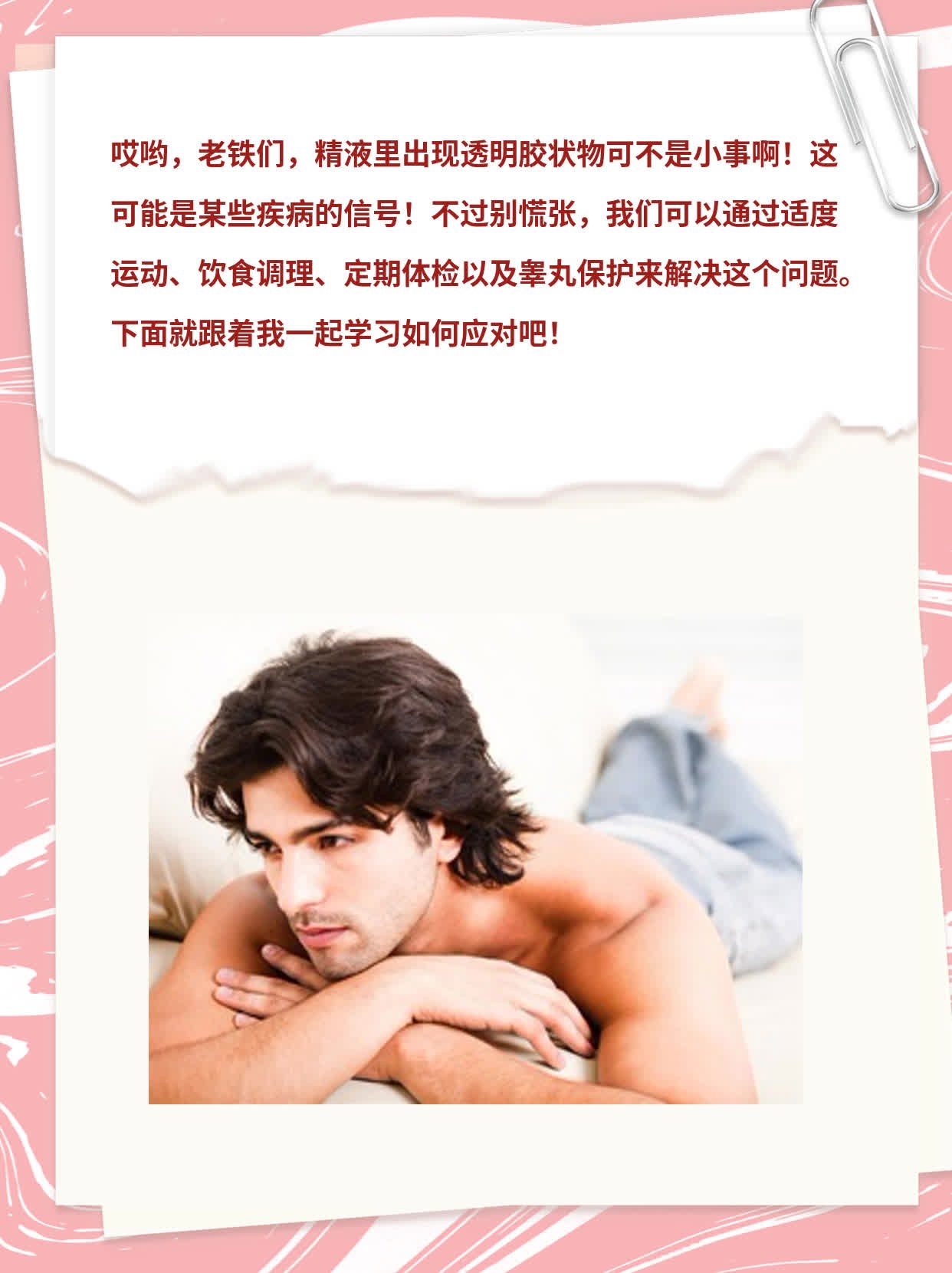 我有一个好朋友叫小王,他最近发现自己的精液里出现了一些奇怪的东西。开始时,他并没有太在意,以为是身体疲劳所致,但随着时间推移,这些异物变得越来越多,于是他决定去看医生。