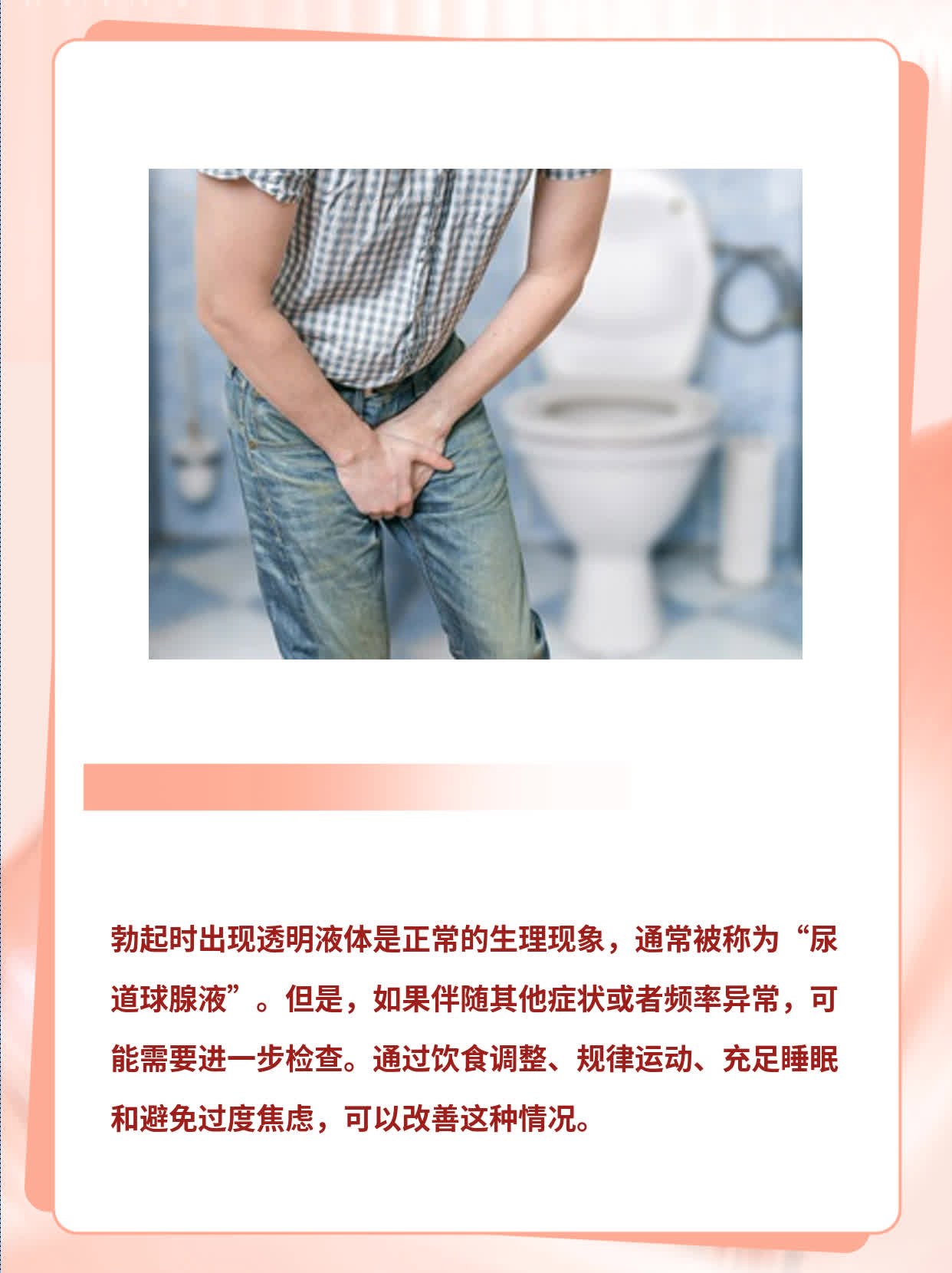 最近我听说了我的一个朋友小张,他遇到了一些奇怪的事情。开始时,小张发现自己勃起后会流出一种透明黏液,这种现象让他感到很困惑。