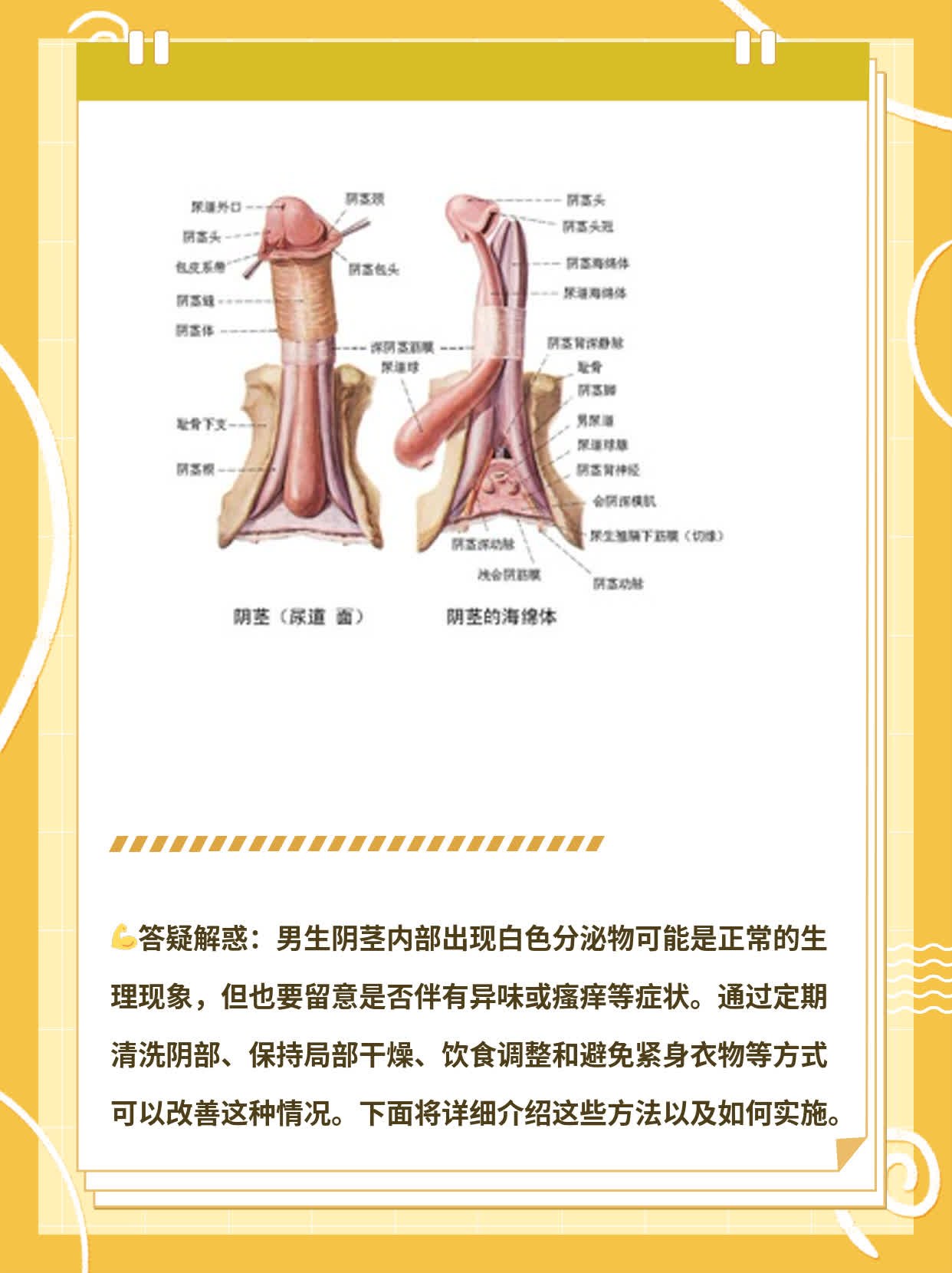这回咱聊聊男性私密部位的小问题。我身边的朋友小谢最近就遇到了这样的困扰,他发现自己的阴茎内部出现了一些白色的分泌物。