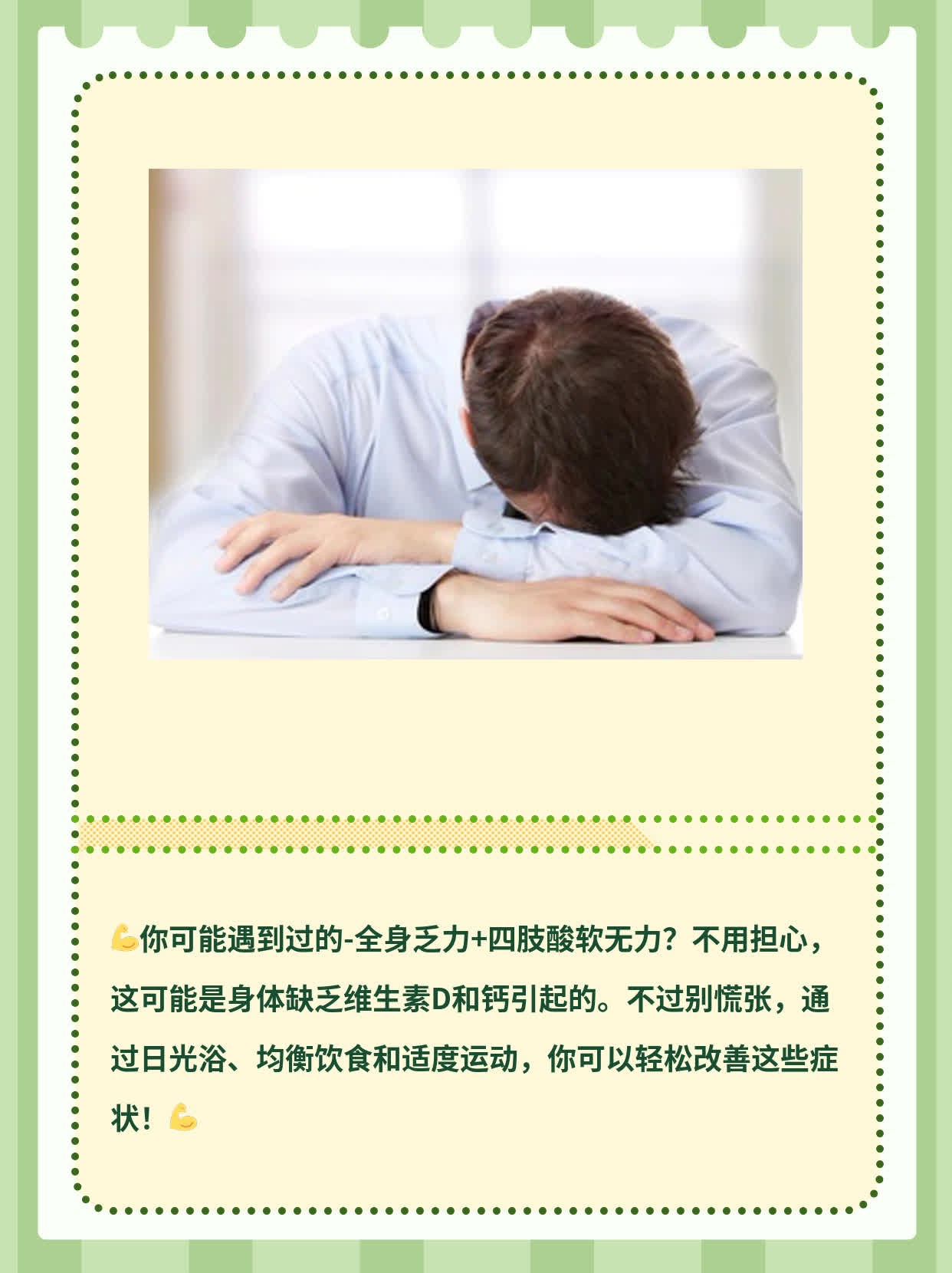 最近我身边的朋友小林总是感觉浑身无力,整个人像棉花糖一样软绵绵的。一开始他以为是工作太累了,休息一下就好了,没想到症状一直没有缓解。