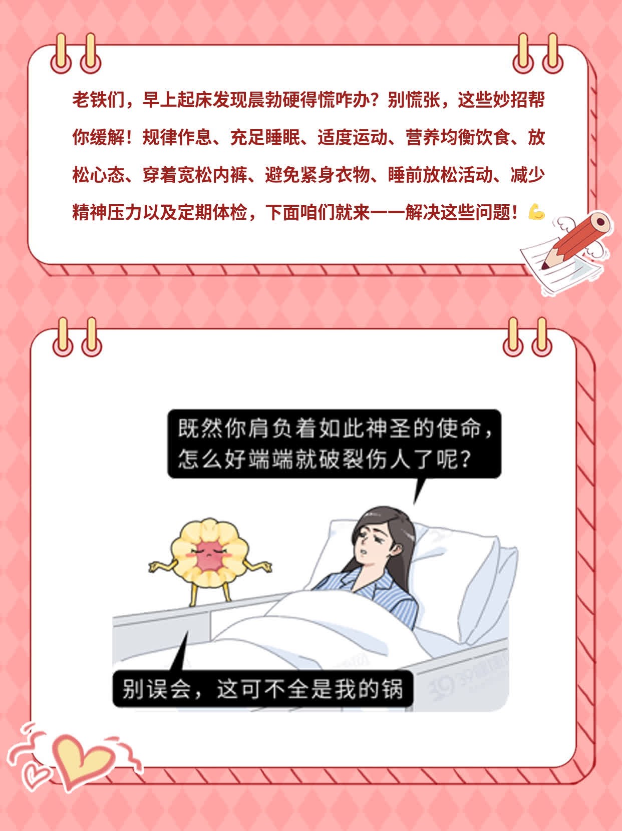 “早晨晨勃”老是硬得慌?这事儿搁谁都不好意思啊!我有个朋友叫小许,他最近就遇到这个尴尬的问题。起初,他以为只是身体自然反应,没想到症状越来越严重。