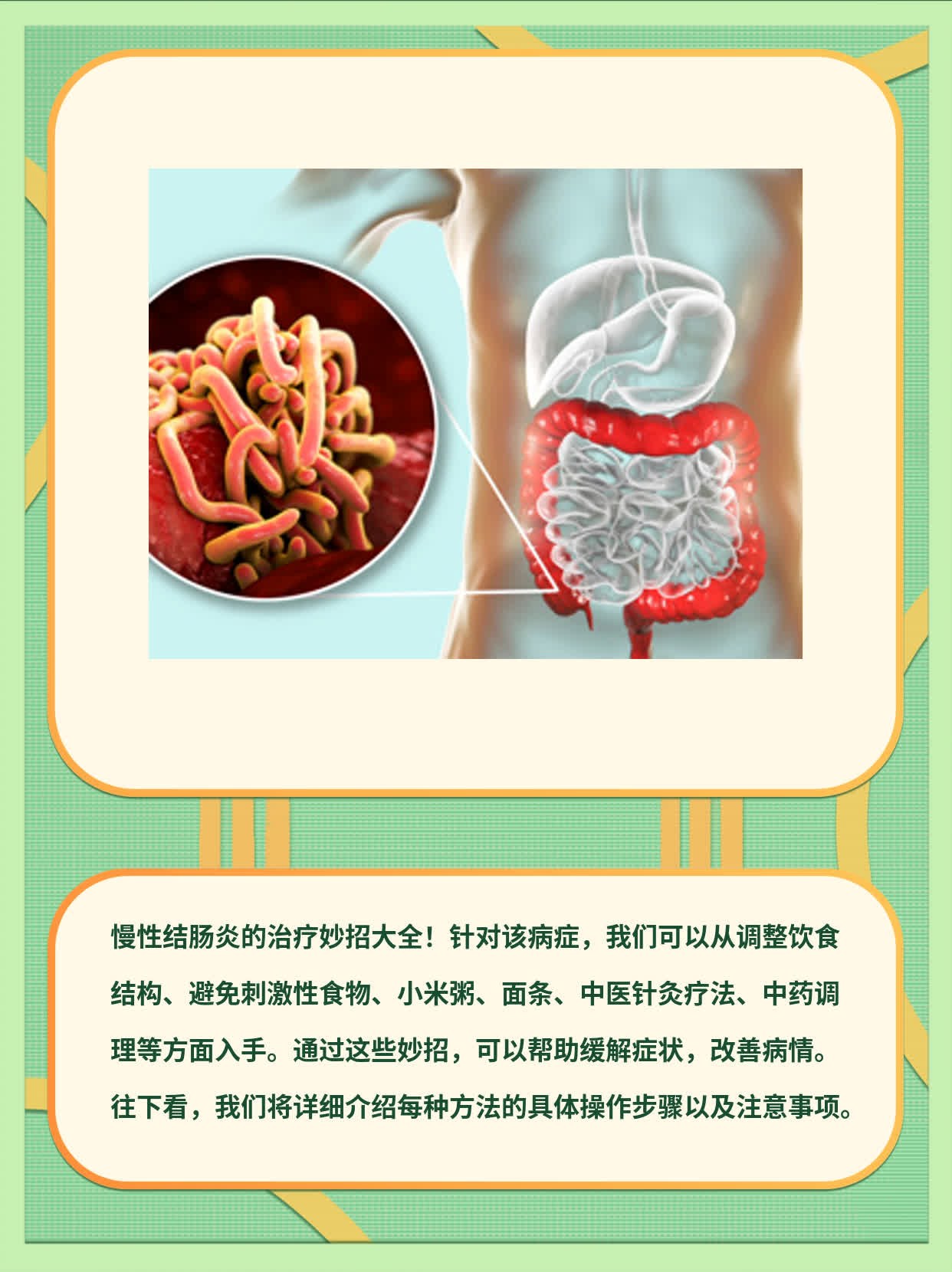 这回儿咱就来聊聊我身边的朋友小潘,他呀,一开始还以为是吃坏肚子了,谁知道竟是得了慢性结肠炎。今天我就给大家分享一下关于慢性结肠炎的治疗妙招。