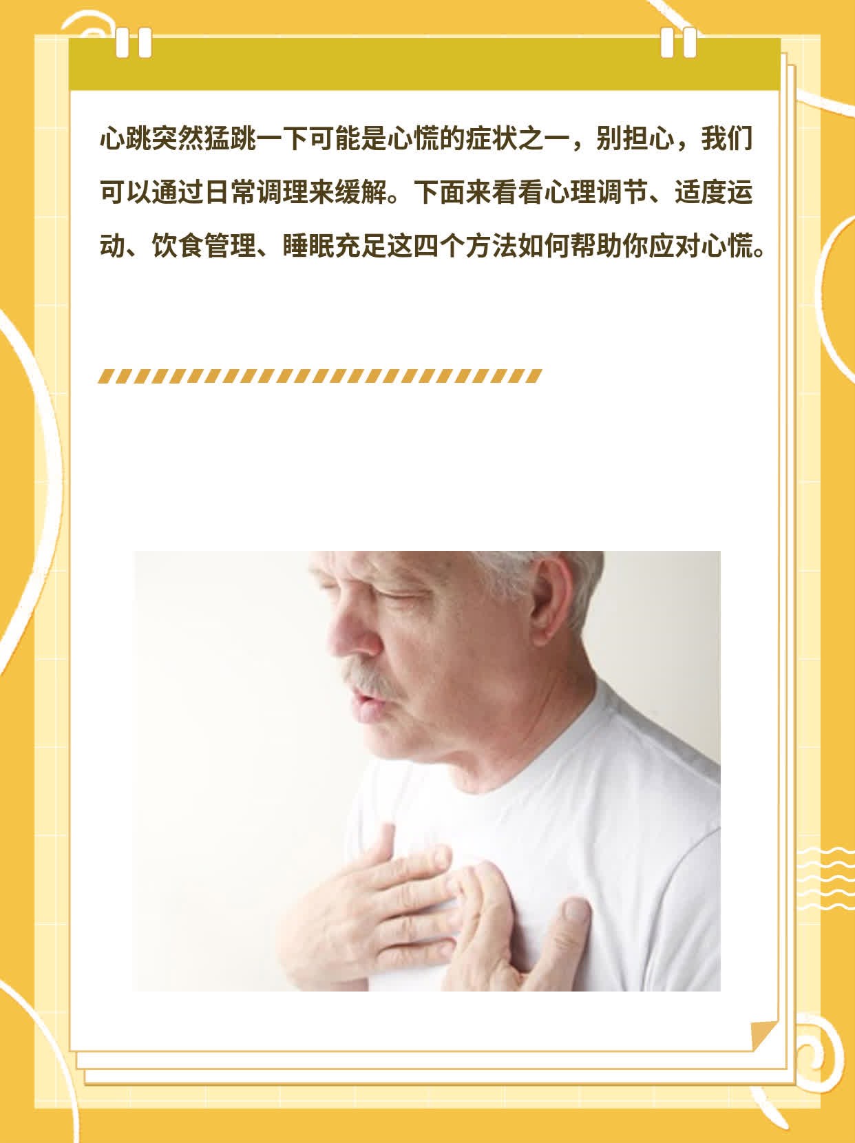 “心慌慌,像有只兔子在胸口蹦跶”这是我的朋友小何第一次出现不适时的感觉。他当时以为是工作压力大导致的心悸,没想到后来症状越来越严重。