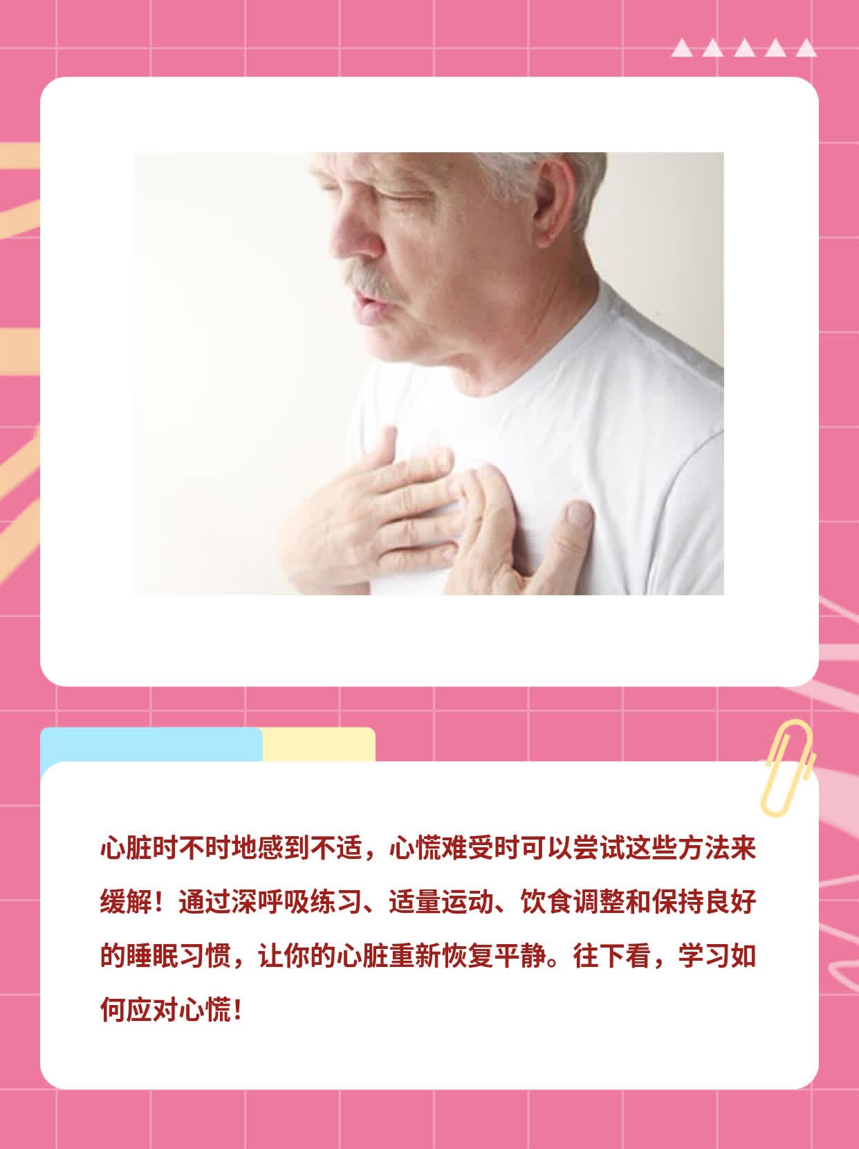 最近我身边的朋友小张开始出现胸闷、呼吸困难和心慌的症状。这些症状让小张感到非常困扰,他甚至开始担心自己的心脏健康问题。